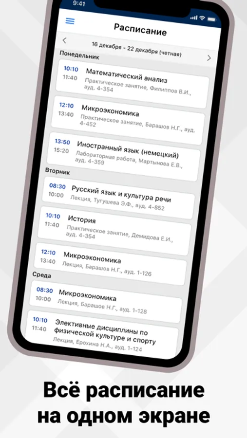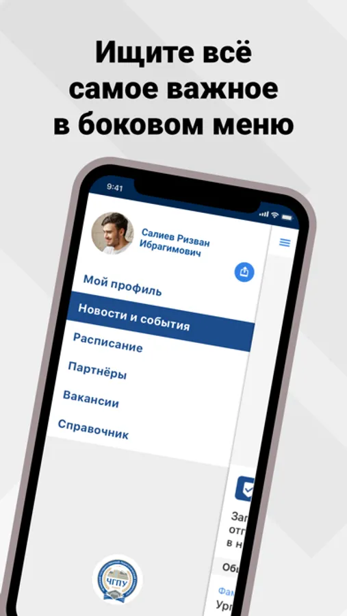 Раздел и уведомления о новостях и событиях в ВУЗе, с возможностью записаться на мероприятие или оставить на него реакцию.