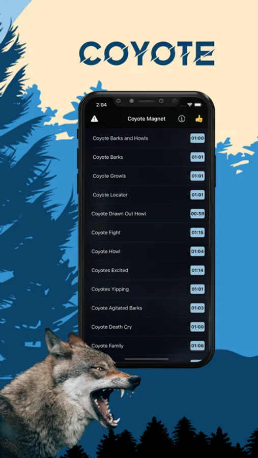 No longer do you need drag along bulky electronic callers to your favorite hunting spot to be a predator pro. With this coyote hunting calls app you can simply select from 70 different predator sounds to attract coyotes into your shooting lanes.