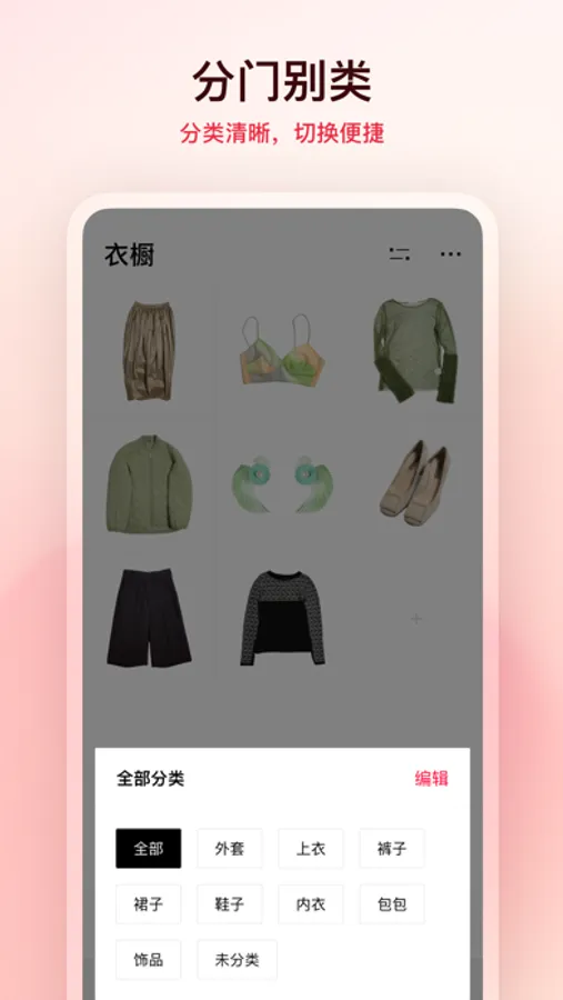 已预设常见衣物分类,也可以轻松创建自己想要的分类。