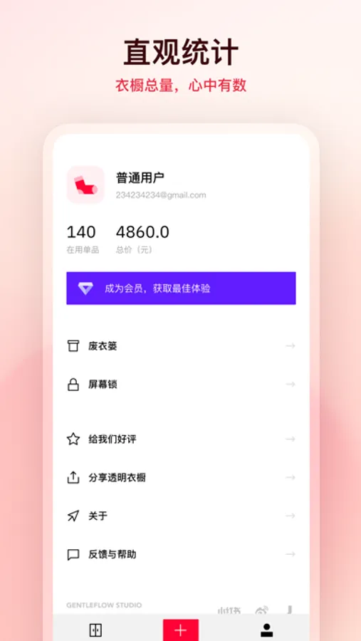 直观展示衣橱总量和总价,帮助你了解自己的消费与习惯。