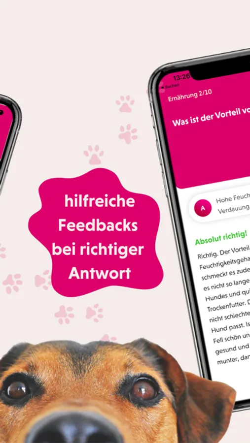 Was ist das Ziel unserer Hunde-Quiz-App? Deine emotionale Beziehung zu Deinem Hund zu verbessern und Dir das gemeinschaftliche Leben schöner zu gestalten. Wir vermitteln Dir Lust auf Hundewissen alles andere als oberlehrerhaft. Spielerisch von Expert:innen aufgebaut kannst Du ganz sicher nicht mehr aufhören zu quizzen.