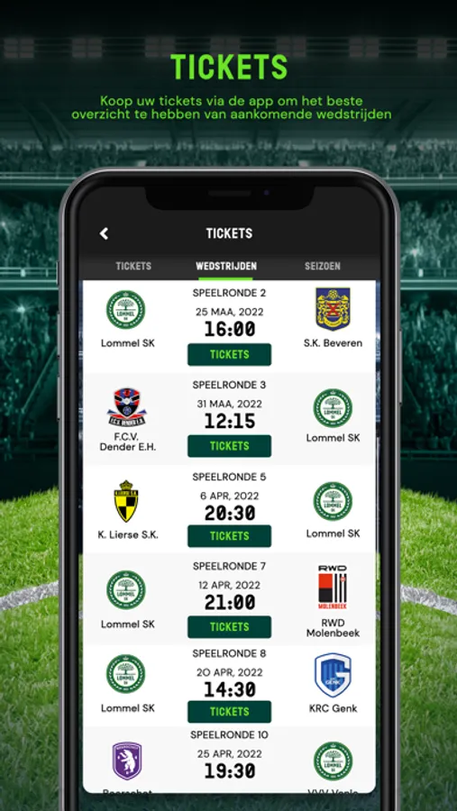 Verleng en/of koop je nieuwe seizoenskaart in de app en koop gemakkelijk tickets voor thuis- en uitwedstrijden.
