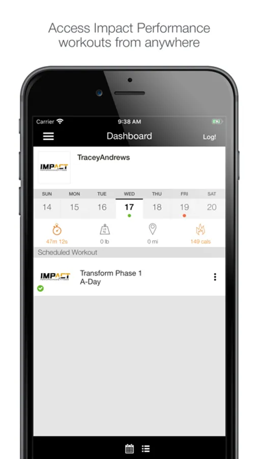 Log your Impact workouts from anywhere with the Impact Performance training app! View your logged workouts, see upcoming scheduled workouts, and book appointments inside the app. Track your progress and get the most out of your Impact workouts!