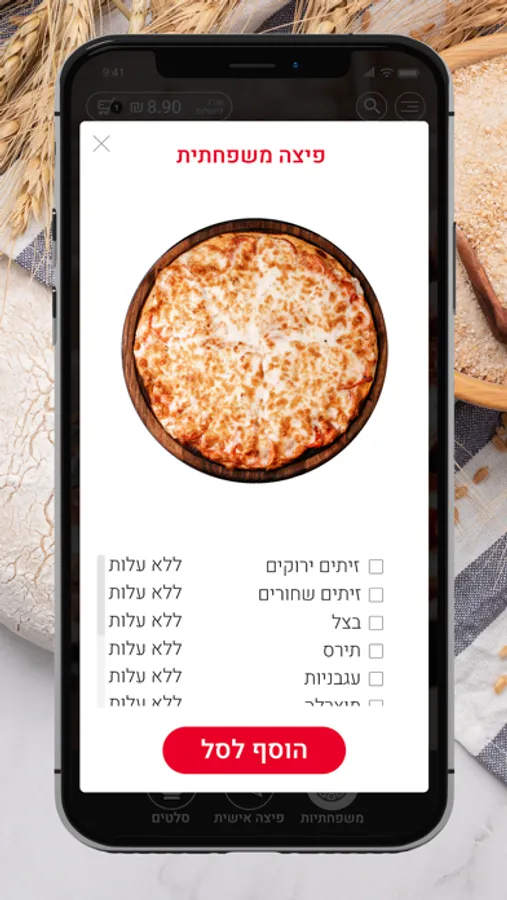 - הוספת פריטים מועדפים מהתפריט לסל בקלות