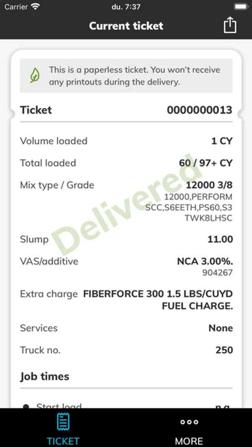 • Displaying delivery tickets in app, eliminating all paper based record keeping