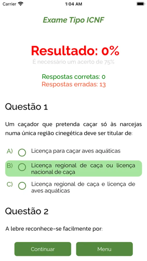 Depois testa os teus conhecimentos com as centenas de perguntas dos exames da Carta de Caçador da nova aplicação, que te ajuda a estudar para os exames oficiais!