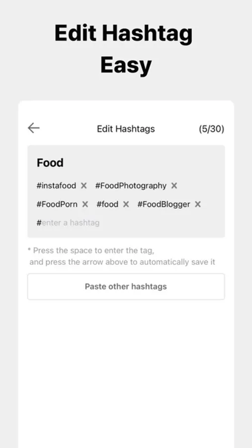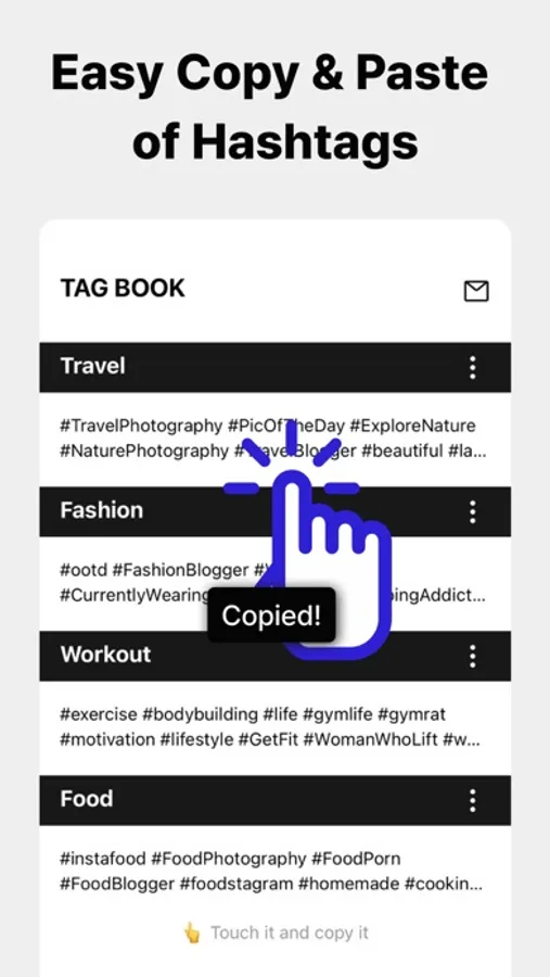 - You can easily copy the hashtag collection with one click.
