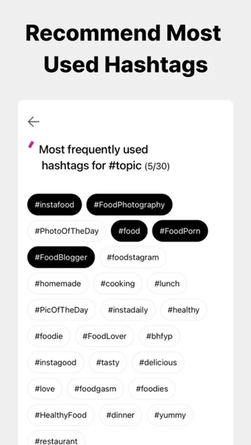 - Recommend popular hashtags that fit the topic you chose.