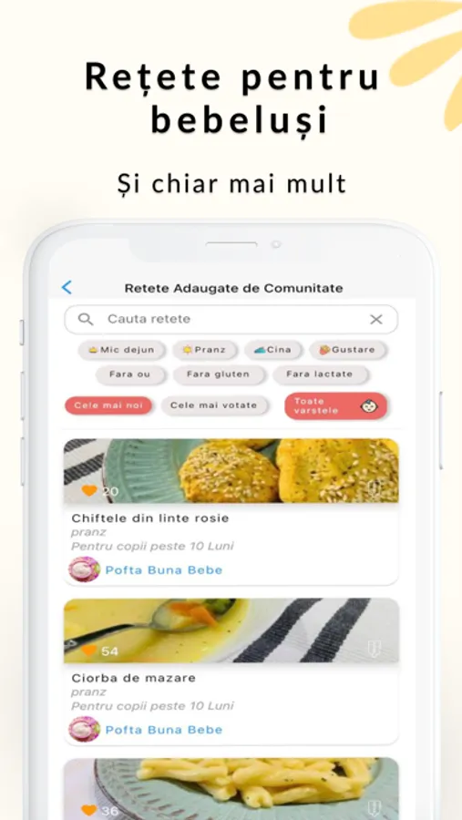 O sa gasesti de asemenea si retete publicate de mamici si tatici, nu doar retetele noastre.