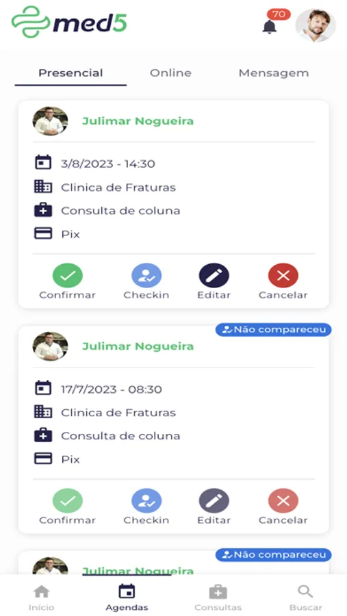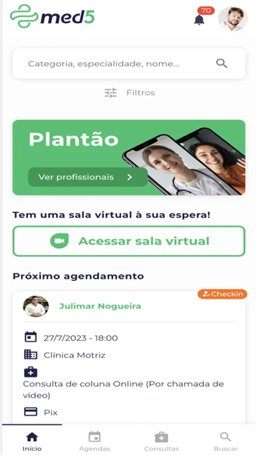 Este App faz parte do Ecossistema Med5 para aproxima o pacientes e profissional de saúde. O App med5 traz autonomia para o paciente encontrar, agendar, realizar consultas de forma rápida, prática e segura.