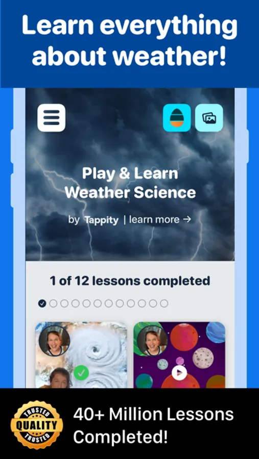 Learn everything there is to know about weather through fun interactive video lessons! By the makers of the #1 science app for kids and trusted by over 100,000 families around the world.