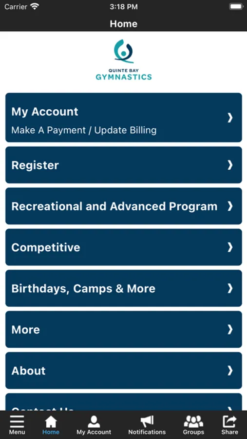The QBGC app allows you to manage your account with ease, register for classes, parties, and special events. You'll also receive important notifications about class changes, closings, registration openings, special announcements, and upcoming events.