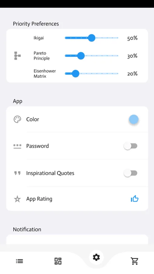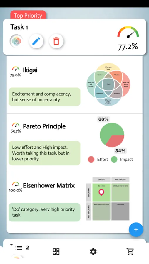 A variety of tools are used to evaluate and prioritize your goals in this app: