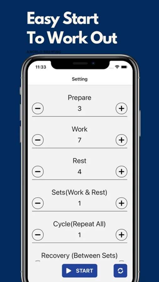+ To set up Prepare, work, rest, rest between sets, number of cycles, and set counts is very easy.