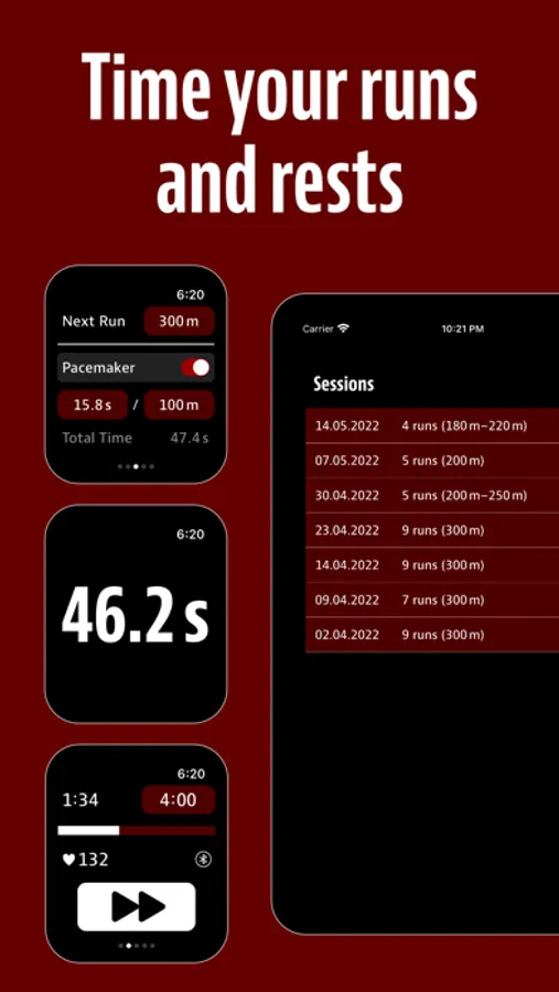 Ready Steady is made for your training runs on the track: An accurate stopwatch that records heart rate and pace, and lets you easily time your rests.