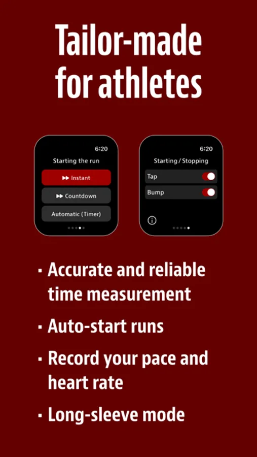 • Using the 3-second acoustic countdown means you do not even need to start the stopwatch manually, which makes the measurement even more accurate.