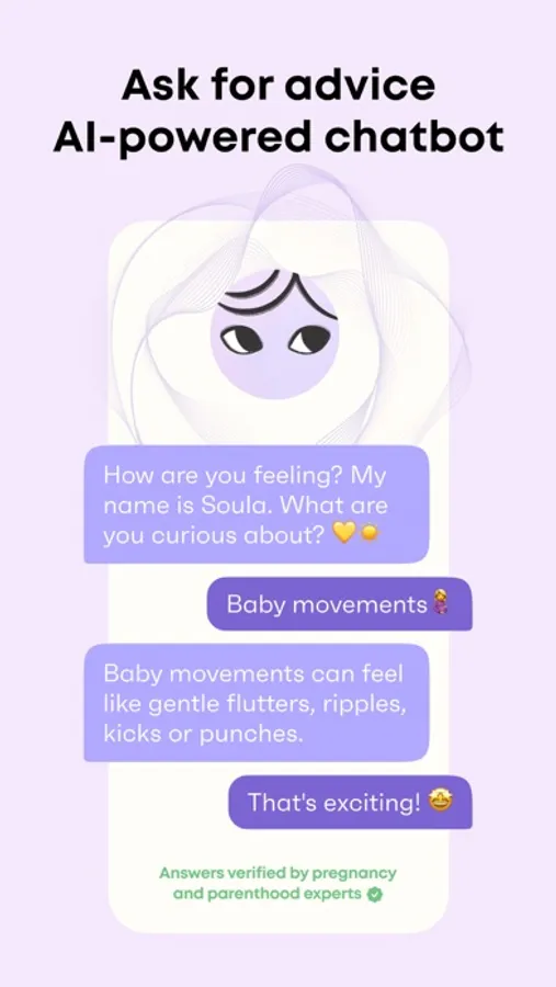 You can find answers to any questions 24/7. Supported by the world's most powerful GPT3 technology and expertly crafted with the combined trusted maternity experts like midwives, doulas, and parenting coaches experience of 30,000+ moms.