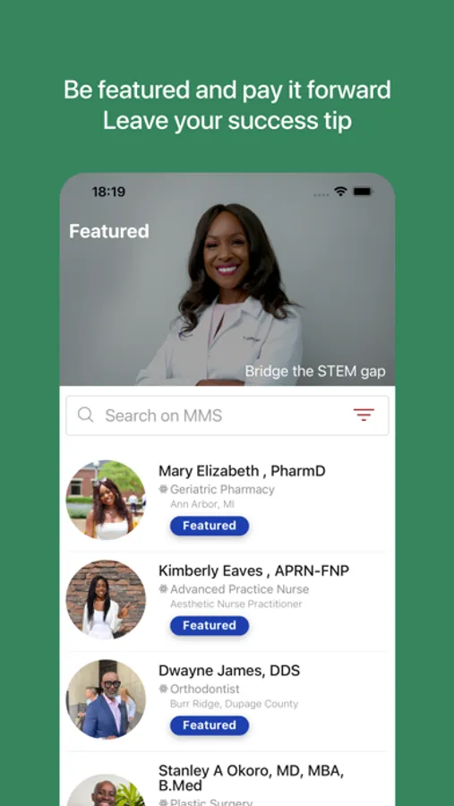 MMS presents an easy way to connect Black Healthcare professionals to communities of color. With a simple upload feature, while sharing personalized success tips all on your phone or tablet. It is available on apple and google, presenting an innovative way to pay it forward and build up our community.