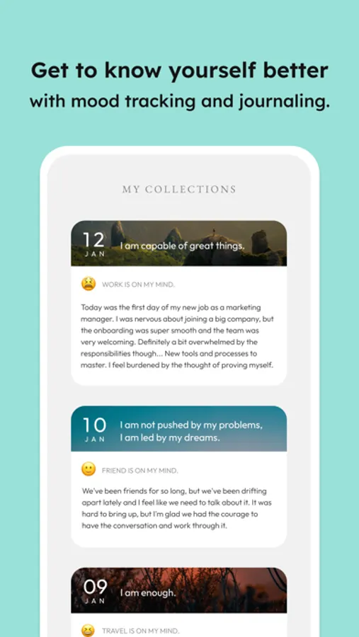 Heal, grow, and love with uplifting reminders of self affirmations, gratitude journaling, relaxing music and insightful audio content.