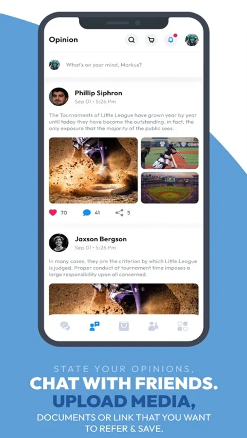 Connect with your teammates, family, and friends. We promote friendly discussion on about any topic. Save important or insightful conversations to MyLife books while saving memories.
