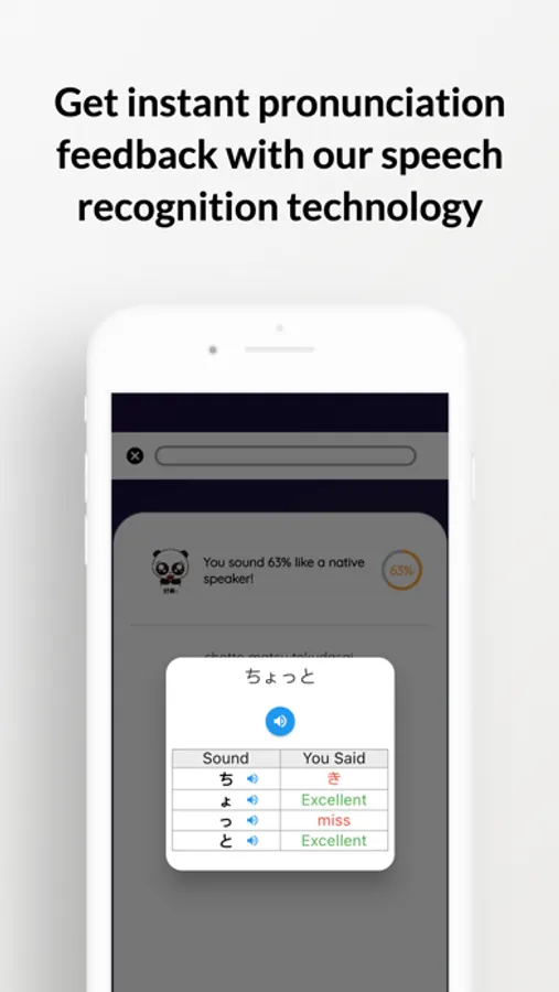 (2) Pronunciation Correction: With the most advanced voice recognition AI, it can instantly judge and correct learners' pronunciation, making your Japanese accent closer to that of native speakers.