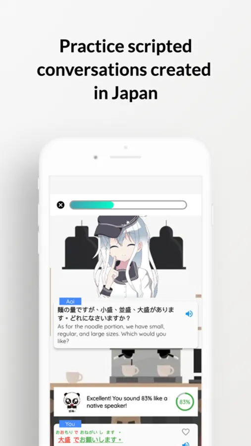 Aoi is an app that helps you get more comfortable speaking Japanese out loud by letting you practice speaking out loud more than any existing method.