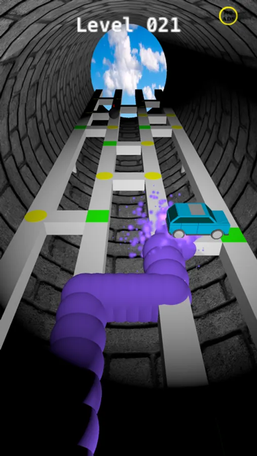 A game in which a car passes through a ladder-shaped maze in a tunnel.