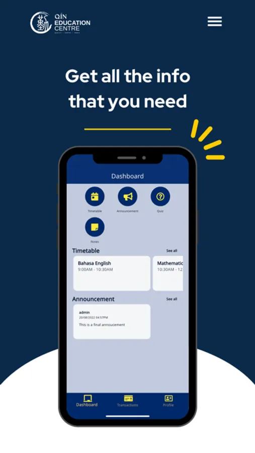 Download this app now to keep track of your timetable, payment history, profile, quiz and many more.