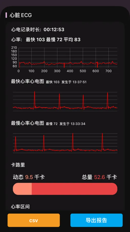 - 实时心率、运动区间显示