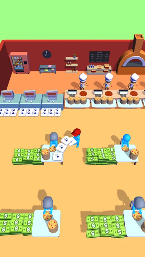 Next up: more people! As you hire more people and boost productivity, you can unlock more tables, open the kitchen and make more kinds of food as well as discover new ways to make money!
