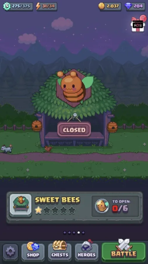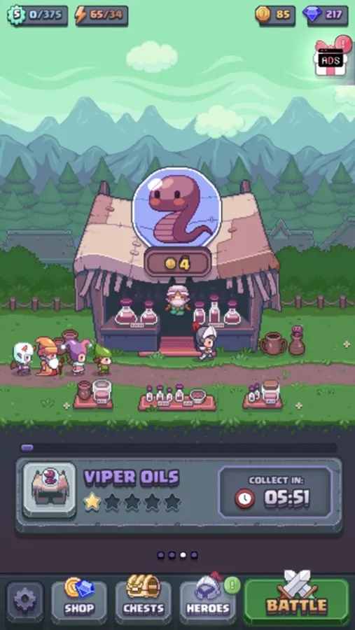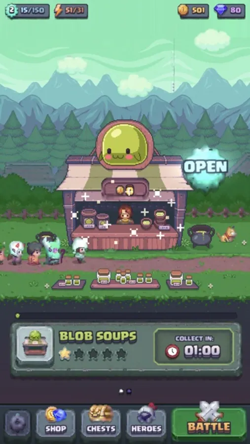 That’s a great revolution! You own the market inside the forest, on the beach, or somewhere and your job is to find the material to cook the best soup and juice of slime. Then you will become rich to upgrade your heroes in the forest.