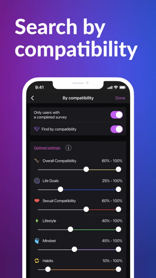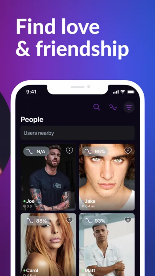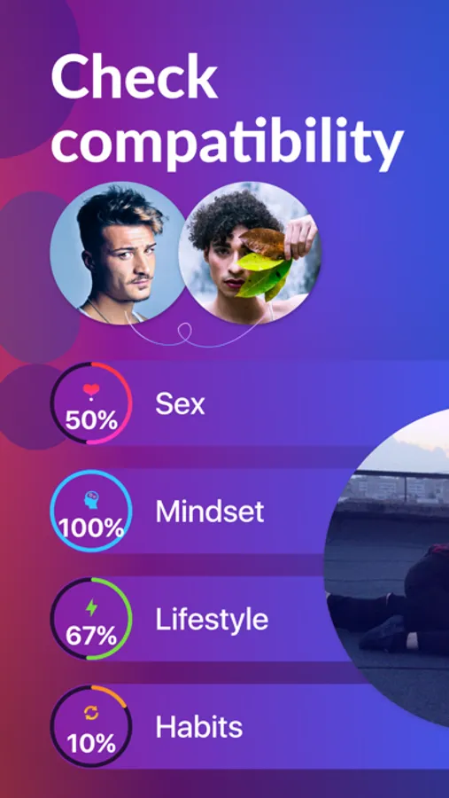- Exclusive feature calculating your compatibility with other users across various parameters.