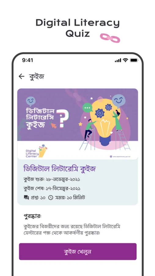 The Digital Literacy Center is a project of the Government of Bangladesh's Information & Communication Technology Division. This is primarily an educational application. Users of this app will be able to enroll in courses offered by the digital literacy e-learning platform. Comprehensive Certificate Programs in Online Platform Information Search and Use, Online Security, Legal Aspects and Responsibilities of Digital Security, Security and Privacy, Digital Lifestyle, Acceptable Digital Circle Behavior, Public Relations, and Online Transactions. Additionally, participants will have the opportunity to engage in open content, videos, events, and quizzes covering all aspects of digital literacy.