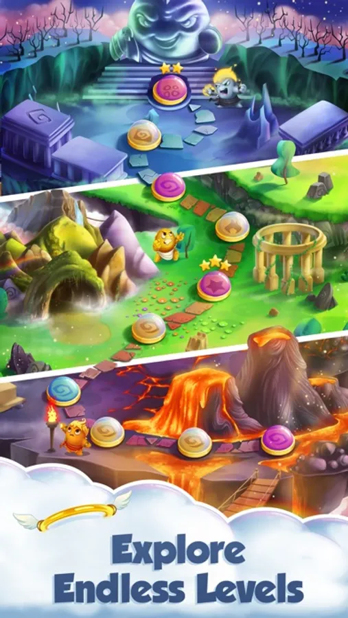 • Check in daily to earn legendary rewards! As you free the gods, they will grant you new boosts and treasures to help you along your journey. Earn the Hammer from the Life God, the Trident from the Water God and more.