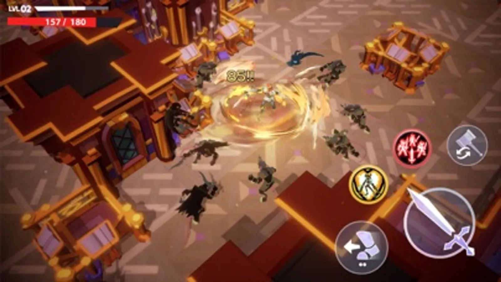 • Uncover the massive mind palace of the Mad King: Fight your way through ever-changing, ever-menacing dungeons. Unlock all 15 regions and clear the maze!