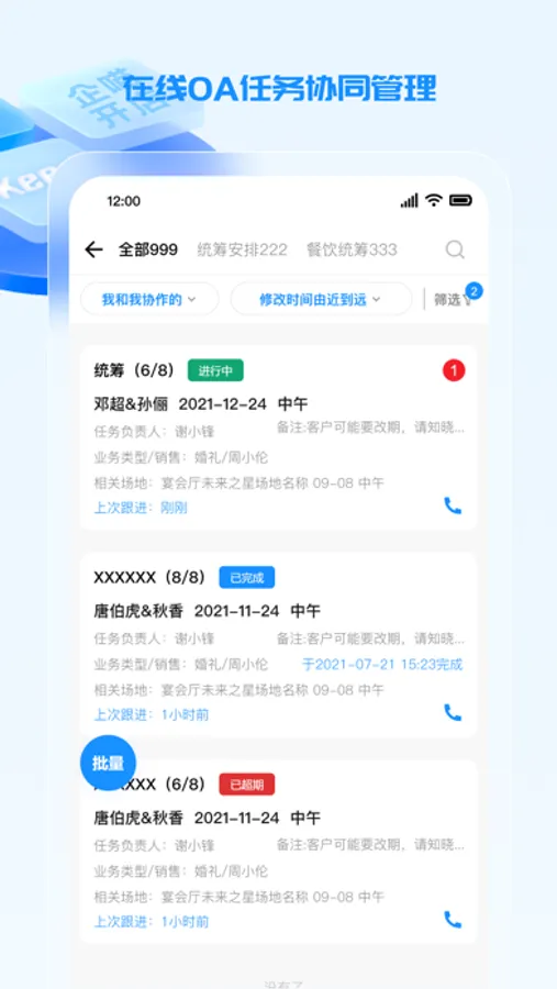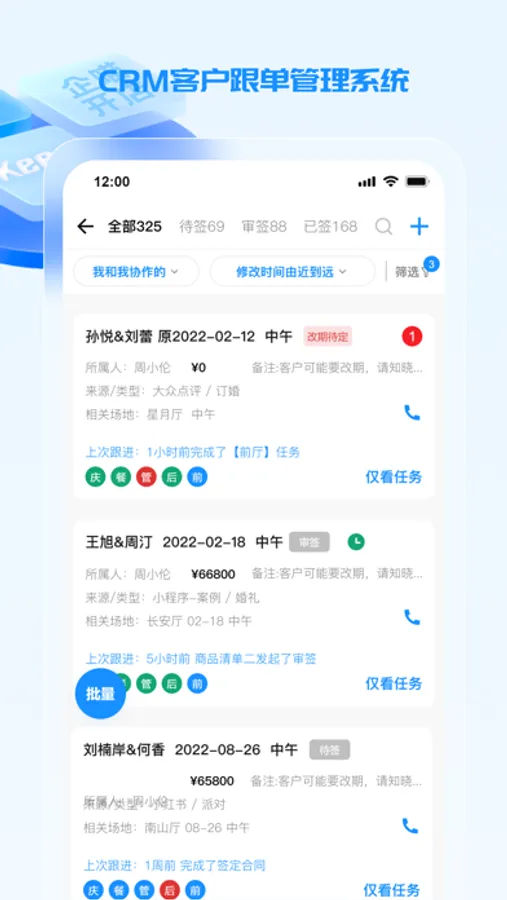 企喵开店是一款专为婚嫁行业打造的专属营销管理系统,已有APP、PC端、微信小程序,全方位解决营销、获客、管理等问题,于线上婚礼微店/CRM客户管理系统/OA自动化运营系统/日程动态提醒/门店谈单系统为一体,多平台交互使用。提高婚企工作效率、提升签单率、通过微信私域流量获客、提升业绩等,是一款婚礼公司/主题宴会酒店/婚纱礼服/婚礼四大金刚等婚嫁产业机构的超级工具,已有全国150多个城市的3000+公司注册使用。