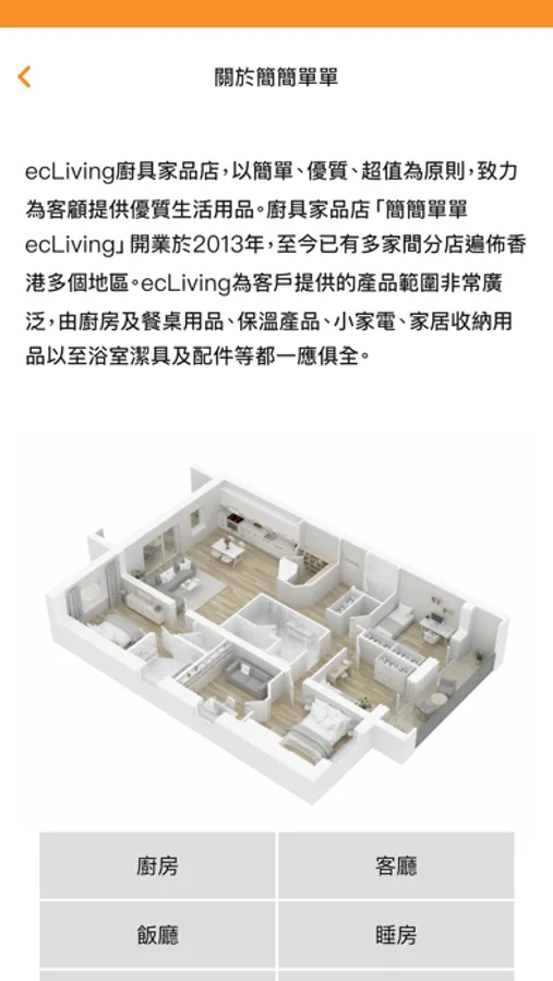 廚具家品店「簡簡單單ecLiving」開業於2013年,至今已有多家間分店遍佈香港多個地區。ecLiving為客戶提供的產品範圍非常廣泛,由廚房及餐桌用品、保溫產品、小家電、家居收納用品以至浴室潔具及配件等都一應俱全。