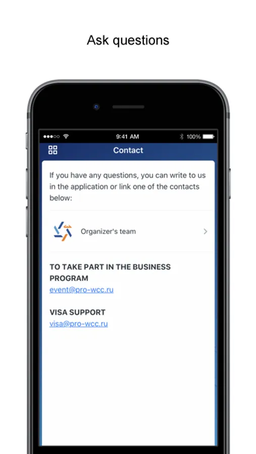 The official application of the event allows you to monitor the event schedule updates in real time, communicate with event participants, receive details of reports and presentations and ask questions to speakers, and access downloaded materials.