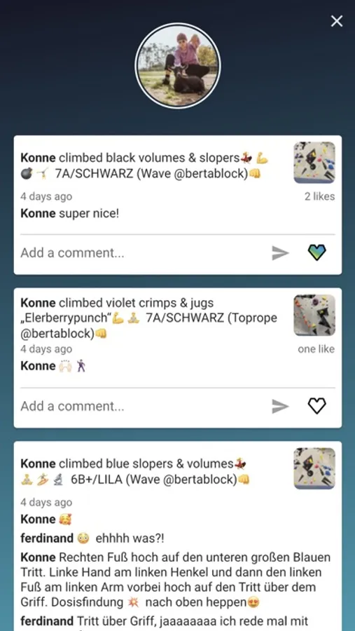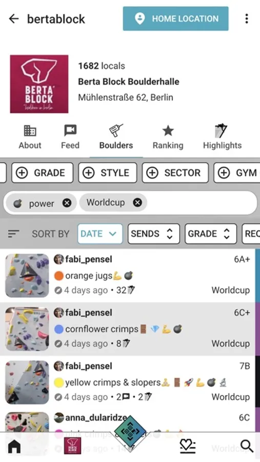 BETA7 is an app for routesetting and bouldering. QR-codes at the starting holds are directly linked to the boulder profile page, for grading & style information, sends and especially beta videos from your friends and favorite routesetters.