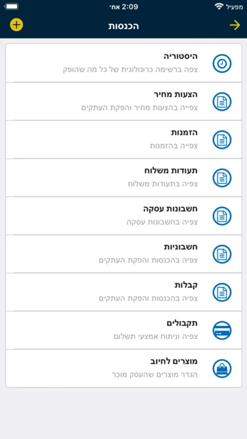 באפליקציה ניתן להעלות מסמכים, לצפות בדוחות רווח והפסד, צפייה בתיקיות משותפות, צ'אט
