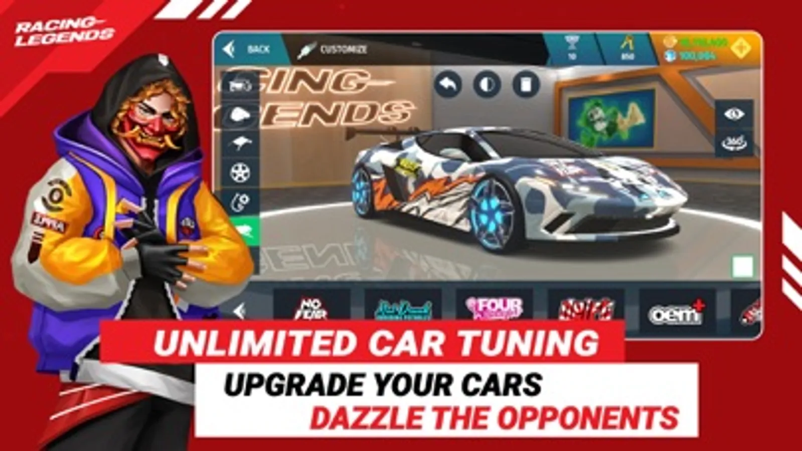 Tune your drive in Racing Legends now! Not only increasing the power of the engine, exhaust, gearbox or tires, you can customize all each and every outside parts to make you supercar visually stand out!