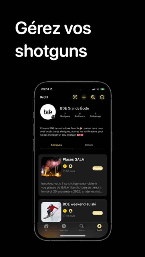 Kiclic est une application permettant de shotgun des évènements. Elle permet aux utilisateurs de créer leur shotgun ou de s’inscrire à des shotguns existants. Son interface simple permet d’avoir une vision globale sur vos futurs shotguns et d’avoir accès à vos résultats à n’importe quel moment. Kiclic intègre une technologie permettant à un utilisateur ne disposant pas d’une connexion rapide de réaliser son shotgun avec les mêmes chances de succès que n’importe quel autre utilisateur.