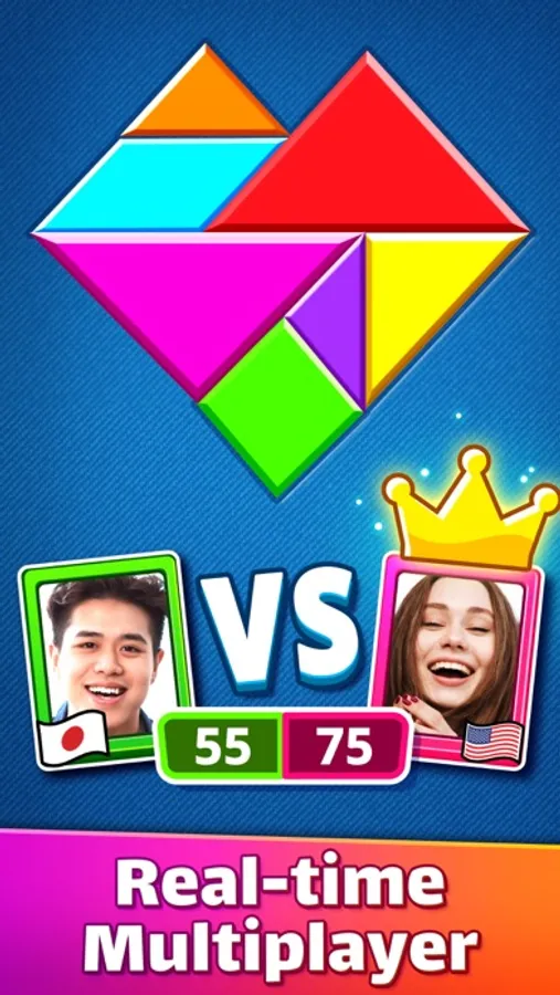In this tangram app, you can turn on sound, and music, ignore chat messages, add a profile or edit it, enter a name, and select your avatar. And also see how many total games you have played, the games won, and your win percentage in this dissection puzzle. Spread happiness by sharing this tangram app with your loved ones.
