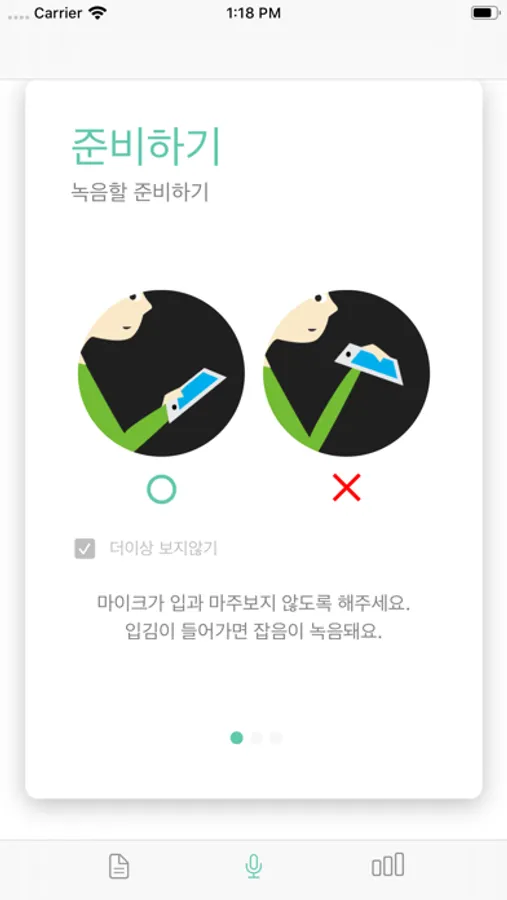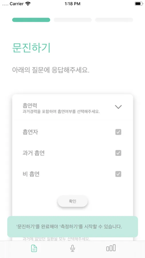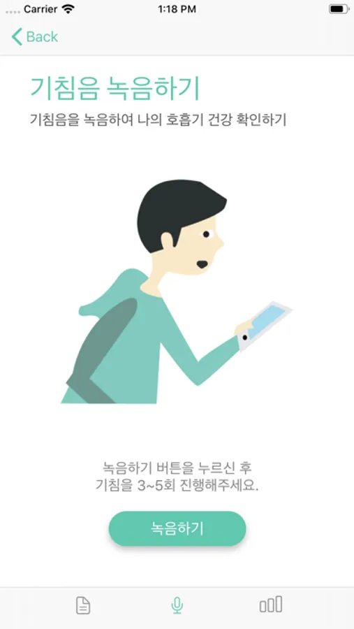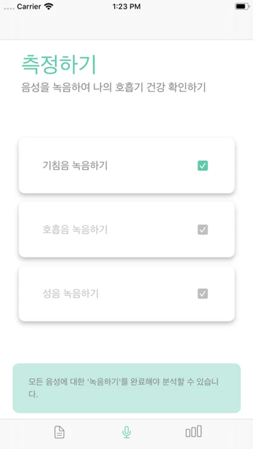 - 가이드에 따라 기침음/호흡음/성음을 녹음해주세요.