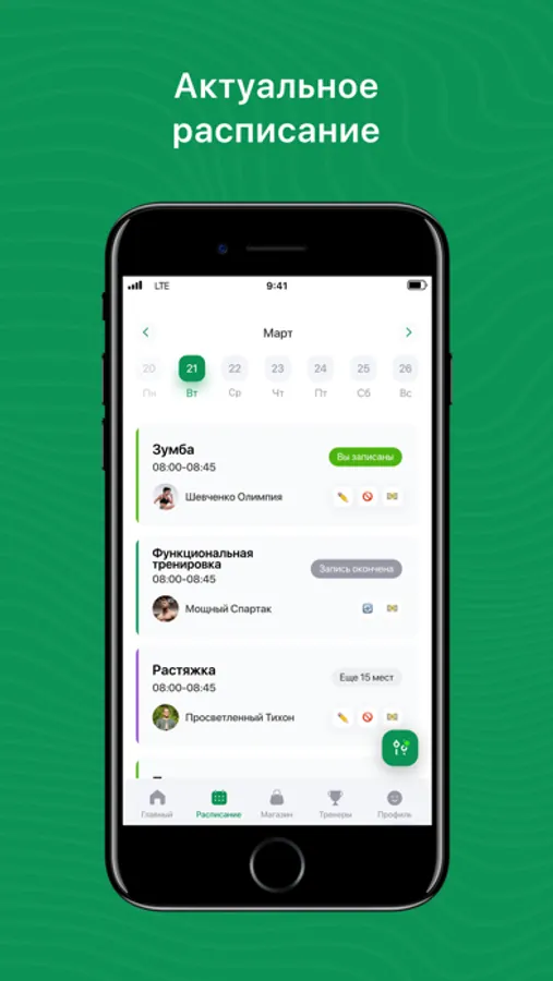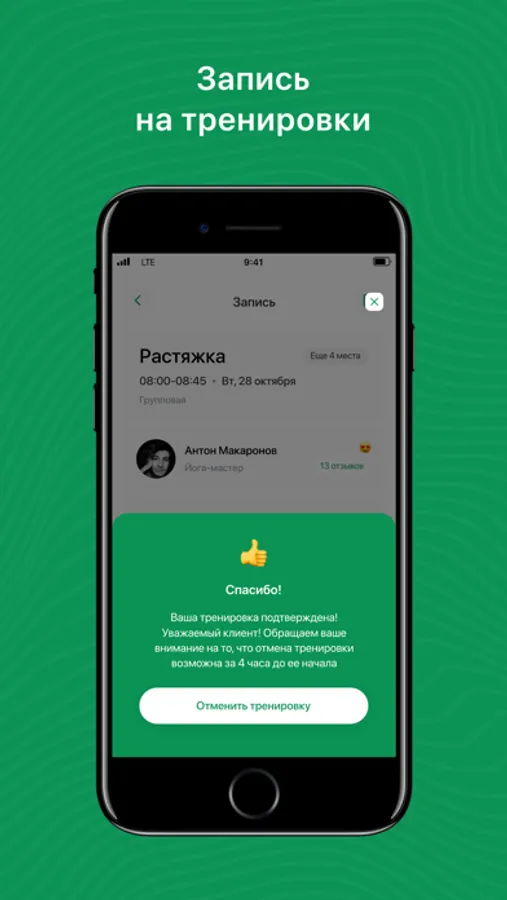Получать PUSH-уведомления о предстоящей тренировке за 3 часа;