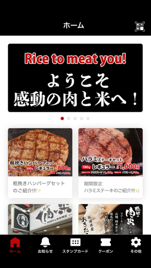 アプリホーム画面から「感動の肉と米」公式ホームページに手軽に遷移できます。