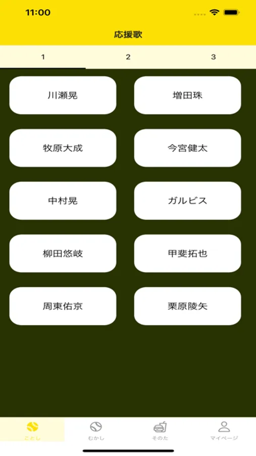 ※選手をタップすると再生が始まるので、あらかじめ音量を調節してからタップしてください。