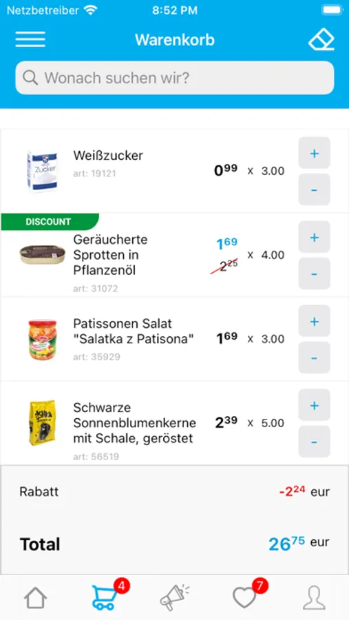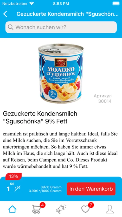 Lust auf polnische Gurken, russische Pelmeni oder ukrainischen Borschtsch? Dann schnell das Smartphone gezückt und in der Mix Markt-App bestellt! Wir liefern unser komplettes Sortiment aus dem Markt direkt zu Ihnen nach Hause – frisch und lecker. Füllen Sie Ihren Warenkorb mithilfe der Favoritenliste oder nutzen Sie Ihre alten Bestellungen für neue Einkäufe. Die App zeigt Ihnen aktuelle Angebote und Aktionen, so können Sie neue osteuropäische Lebensmittel entdecken und bei Ihrem Einkauf sparen. Praktisch: Gleiche Zugangsdaten für App und Webshop erleichtern die Nutzung.