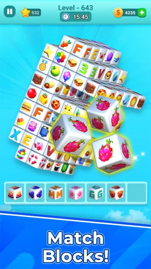 Cube Tile Match 3D is absolutely an addictive strategy games that you must fall in love with once you play it. As a board game, this matching 3d game is simple & entertaining for anybody to enjoy!