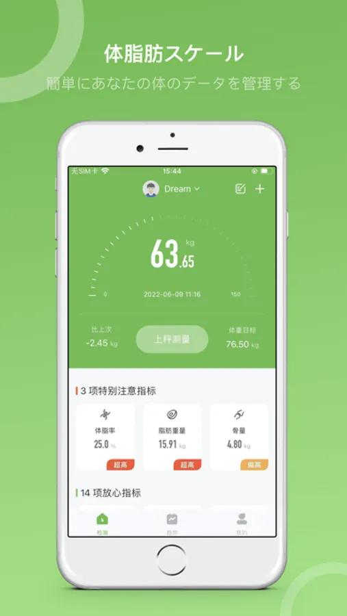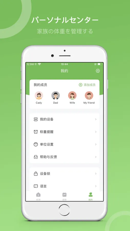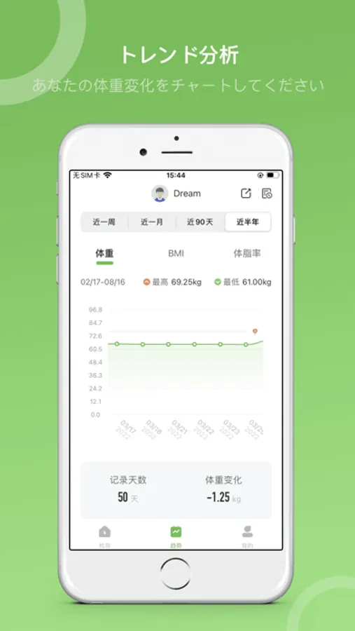 主な機能紹介【体重記録】手動で体重を記録し、定期的に体重データの変化を分析し、いつでもどこでも親切な体重小助手